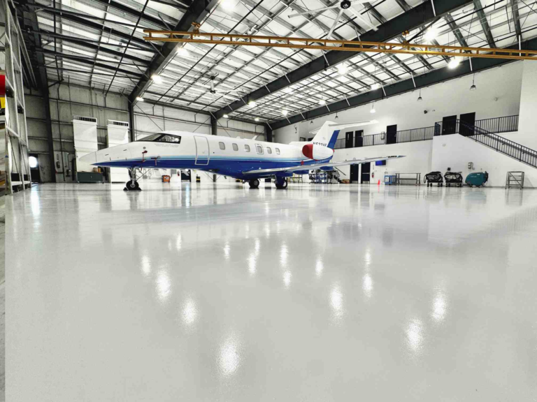 Heavy-duty epoxy and polyaspartic system designed for aircraft traffic, chemical resistance, and fast return to service.