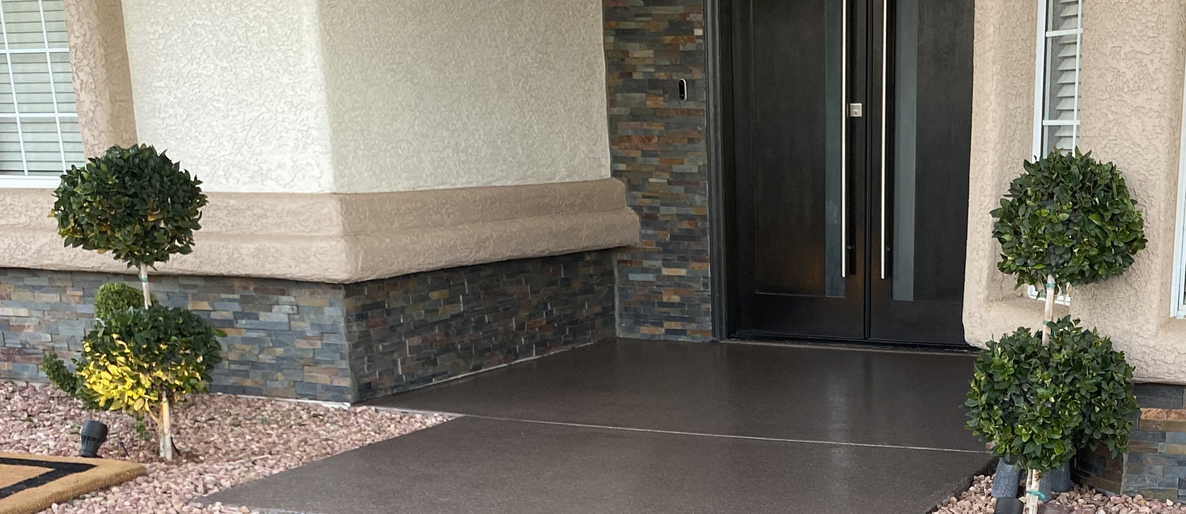 Upgrading your walkway also means you are setting the tone for welcoming others to your home. In addition, having a professional walkway coating installed will hide imperfections and protect your walkway from the outdoor elements. So give your walkway a new first impression and style upgrade with our exterior Polyaspartic coatings. Our floor coating system is your stylish reliable flooring that is backed by a 10-year product warranty. We are the #1 walkway coatings specialists in Las Vegas and the surrounding areas. Give us a call to schedule an appointment for your walkway coating installation.